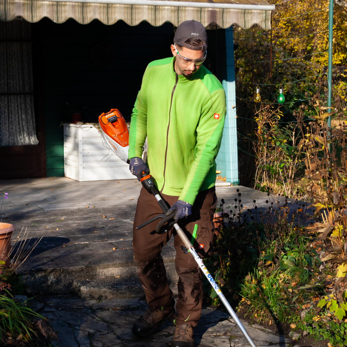 Wir pflegen Ihren Garten ausschließlich mit modernsten Elektrogeräten, überwiegend aus der Stihl AP Serie, und sorgen so für weniger Lärm und eine saubere Umwelt.